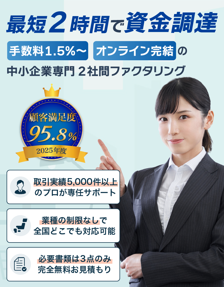 手数料の低さ、迅速な入金対応、柔軟な調達金額により、